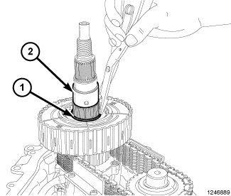 11. Install the Snap Ring (1) onto the Input Shaft (2).