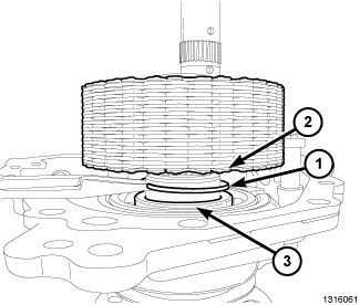 1. Position the Oil Pump Assembly (1) onto the Input Shaft (2).
