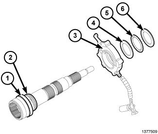 9. Install the thrust washer (1) onto the Input Shaft (2).
