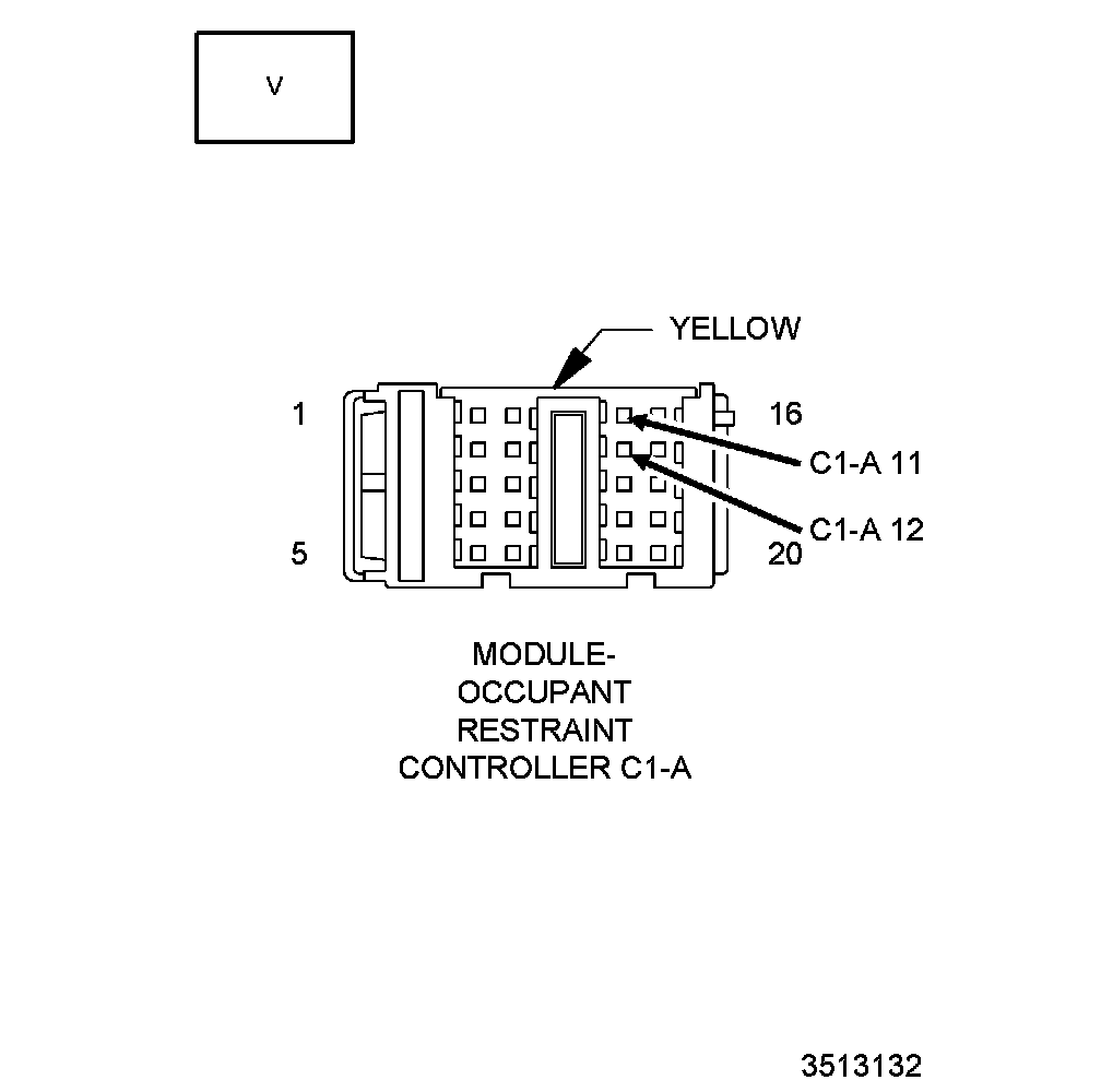5. Measure the voltage of the (R61) Driver Squib 2 Line 2 circuit between ground and terminal C1A -11 of the ORC module body harness connector.