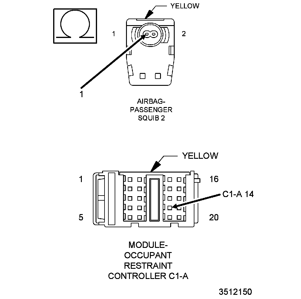 - Repair the (R64) Passenger Squib 2 Line 1 circuit for an open. Then, Go To 4