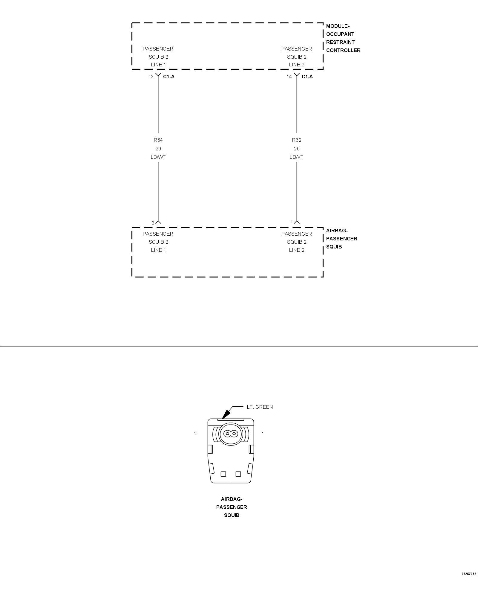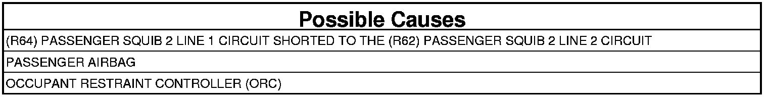 - Repair the (R64) Passenger Squib 2 Line 1 circuit for a short to the (R62) Passenger Squib 2 Line 2 circuit.
