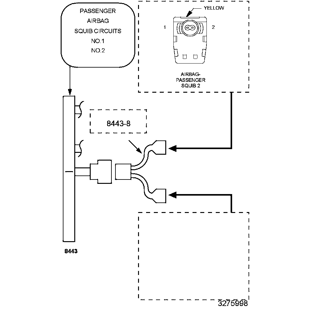 1. Disconnect the (8443A) and the (8443-8) from the Passenger Airbag Squib harness connector.