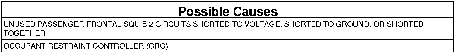This DTC sets when the ORC detects the presence of a Passenger Frontal Squib 2 circuit while the configuration of the module does not reflect a Passenger Frontal Squib 2 circuit should be present. Once set, this DTC is latched for the entire power cycle and requires the module to be re-initialized to set code.