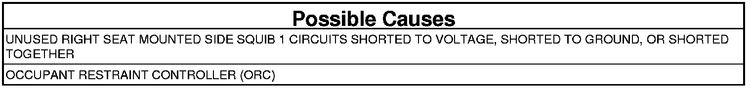 This DTC sets when the ORC detects the presence of a Right Side Seat Thorax Airbag circuit while the configuration of the module does not reflect a Right Side Seat Thorax Airbag should be present. Once set, this DTC is latched for the entire power cycle and requires the module to be re-initialized to set code.