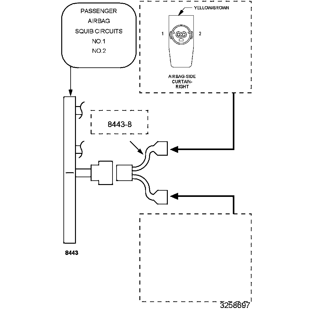 1. Disconnect the (8443A) and the (8443-8) from the Right Side Curtain Airbag harness connector.