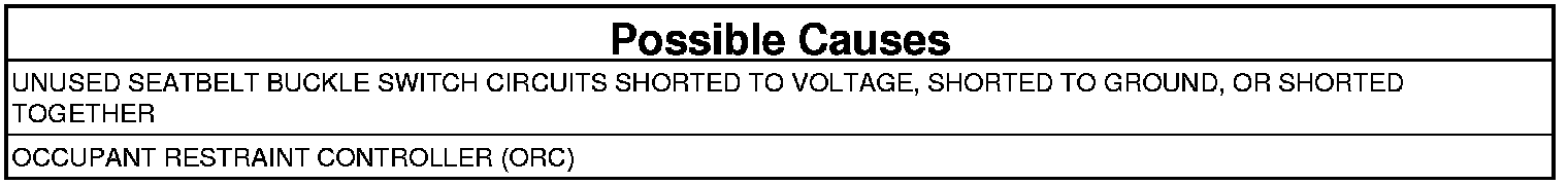 This DTC sets when the ORC detects the presence of a Seatbelt Buckle Switch circuit while the configuration of the module does not reflect a Seatbelt Buckle Switch should be present. Once set, this DTC is latched for the entire power cycle and requires the module to be re-initialized to set code.