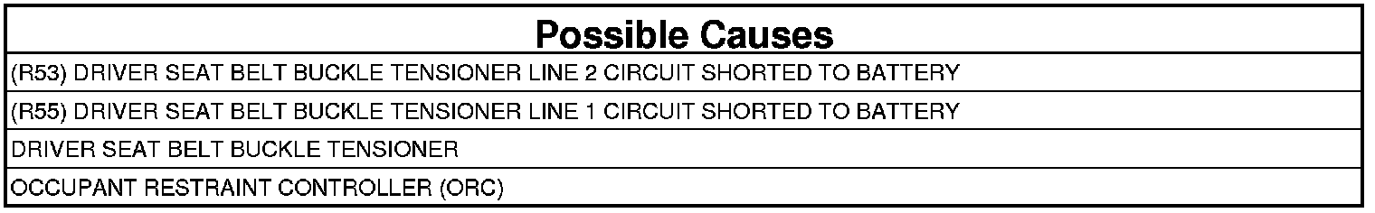 - Repair or replace the Driver Seat Belt Buckle Tensioner circuits with voltage present.