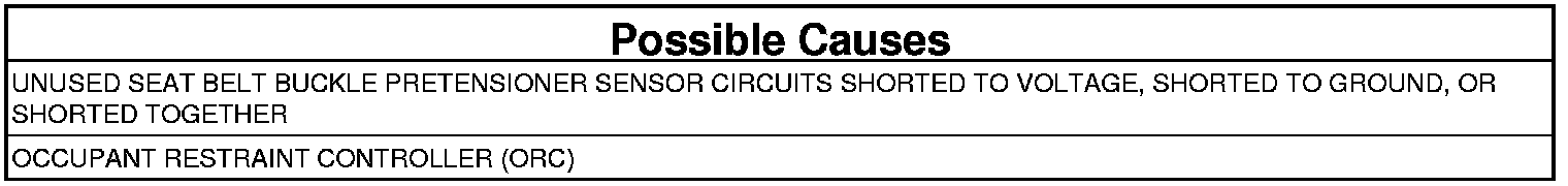 This DTC sets when the ORC detects the presence of a Seatbelt Buckle Pretensioner sensor circuit while the configuration of the module does not reflect a Seatbelt Buckle Pretensioner sensor should be present. Once set, this DTC is latched for the entire power cycle and requires the module to be re-initialized to set code.