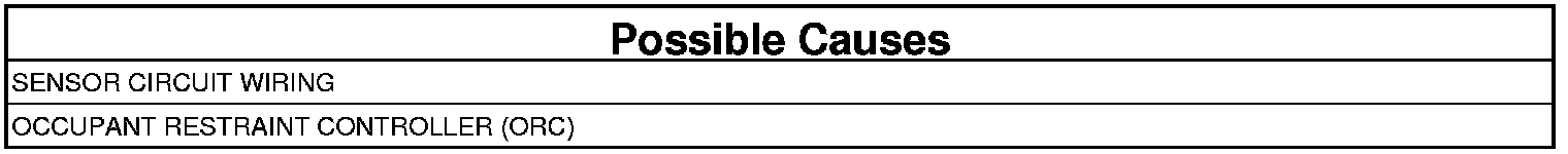 When powered, the Occupant Restraint Controller (ORC) sends a test current to the Seatbelt Buckle Pretensioner to verify the integrity of the sensor and wiring. The presence of this code indicates that any two circuits, from two or more sensors, have become shorted or "coupled" together.