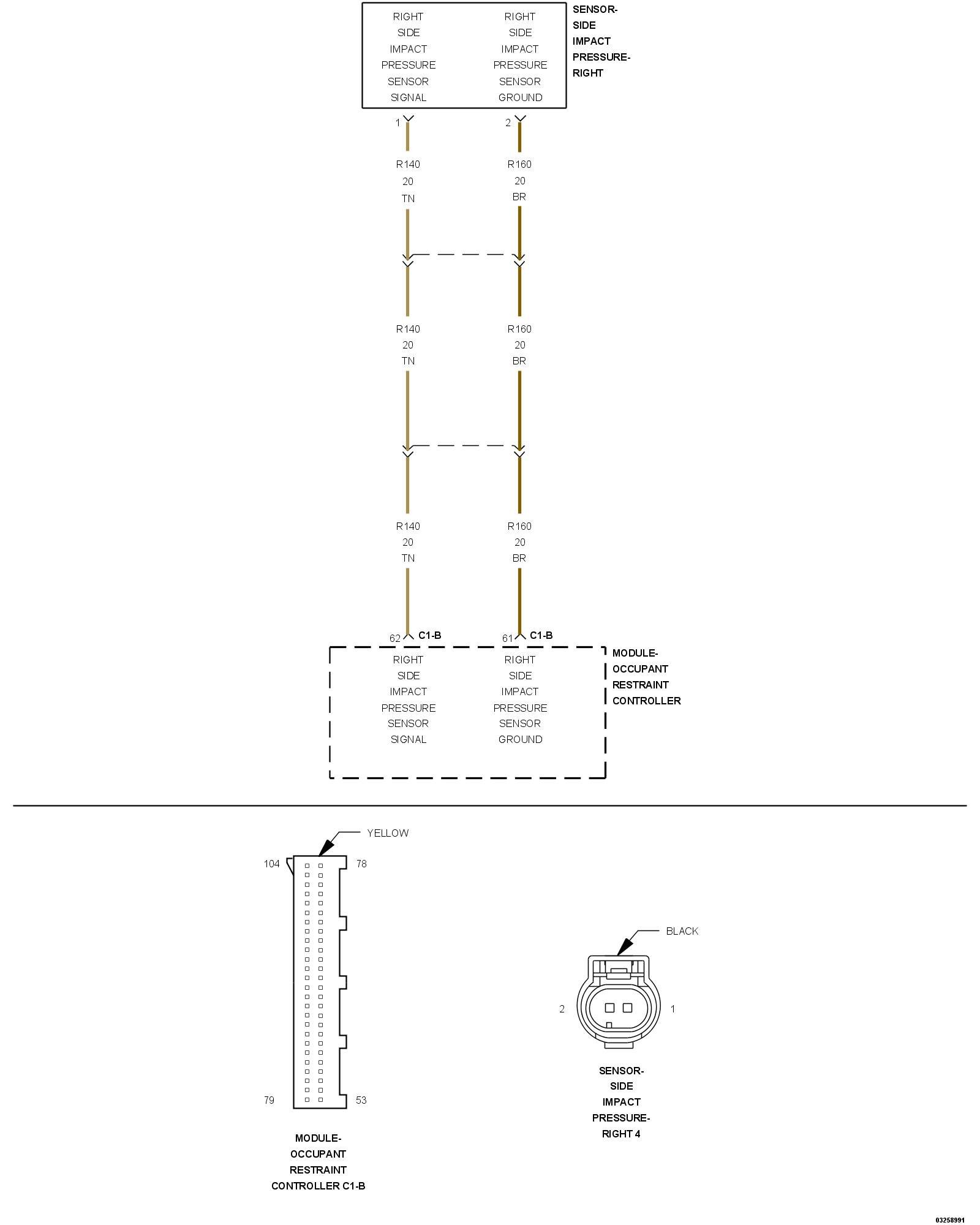 - Repair the (R140), (R160) Right Side Impact Pressure Sensor circuits for a short to voltage.