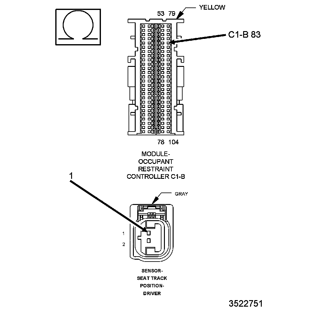 3. Measure the resistance of the (R261) Driver Seat Position Sensor Data circuit between the ORC module body harness connector cavity C1-B 83 and the Driver Seat Track Position Sensor connector cavity 1.