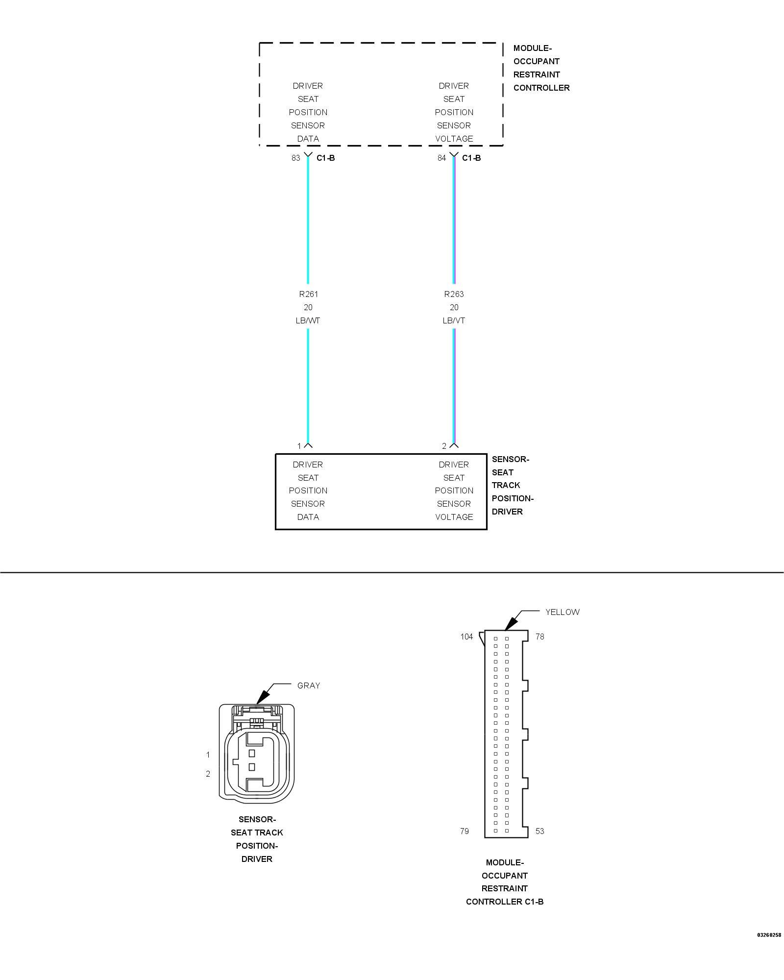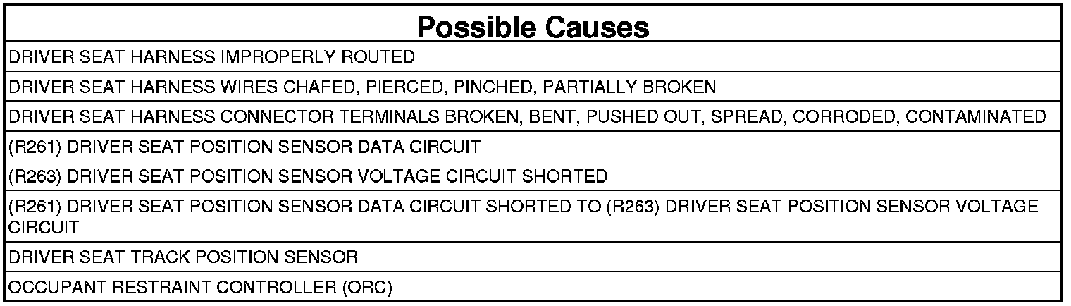 7. CHECK (R261) DRIVER SEAT POSITION SENSOR DATA CIRCUIT FOR A SHORT TO (R263) DRIVER SEAT POSITION SENSOR VOLTAGE CIRCUIT