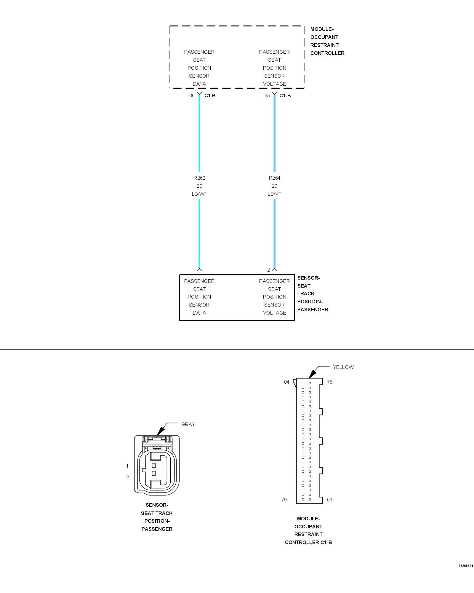 6. CHECK (R262) SEAT POSITION SENSOR DATA-PASSENGER CIRCUIT AND (R264) SEAT POSITION SENSOR VOLTAGE-PASSENGER CIRCUIT FOR A SHORT TO VOLTAGE