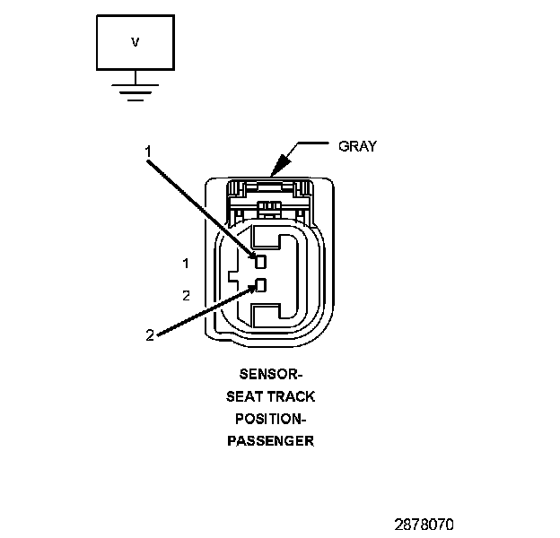 3. Measure the voltage of the (R264) Passenger Seat Position Sensor Voltage circuit between the Passenger Seat Track Position Sensor connector and ground.