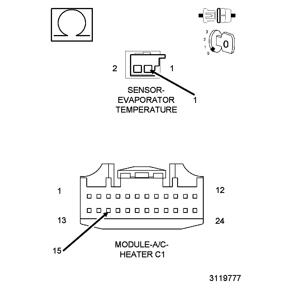 B1030-15-EVAPORATOR TEMPERATURE SENSOR - CIRCUIT SHORT TO BATTERY OR OPEN