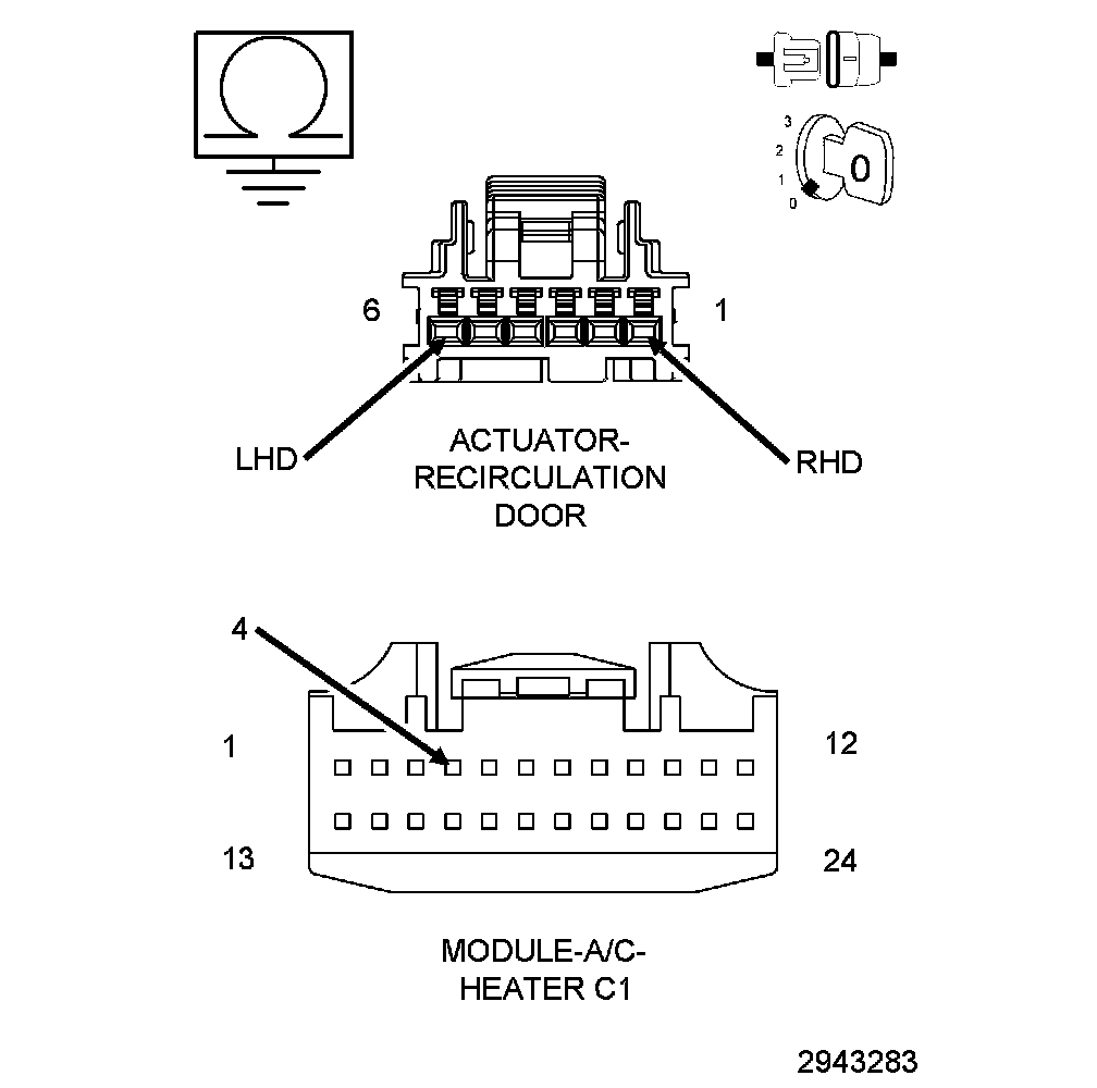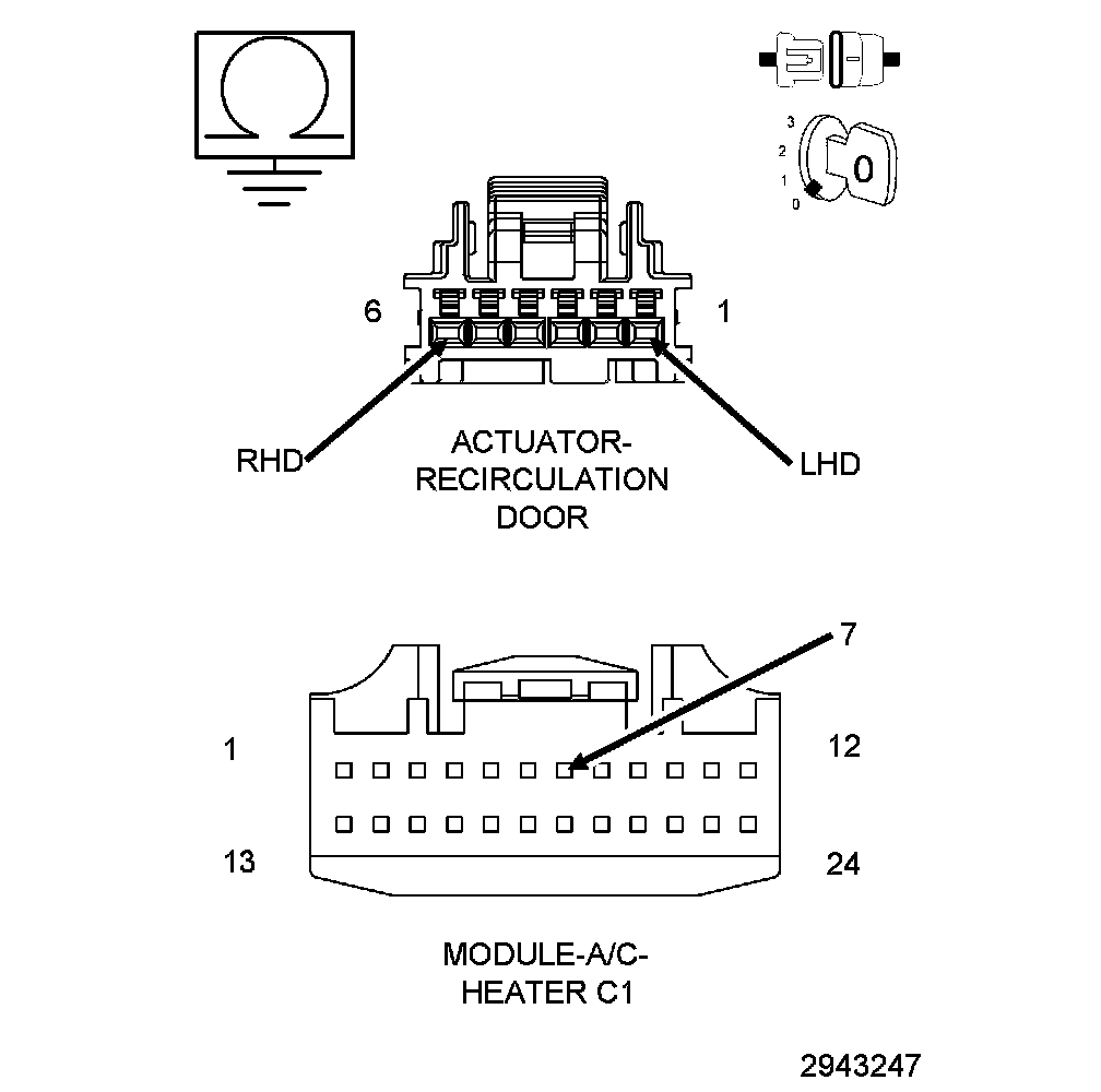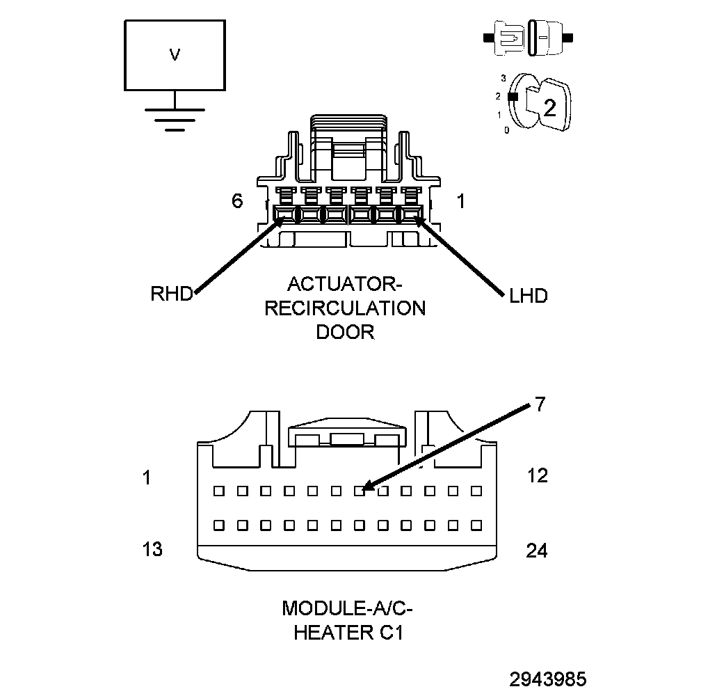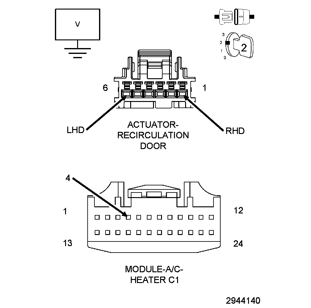 1. Measure the voltage of the (C34/C68) Recirculation Door Common Driver circuit.