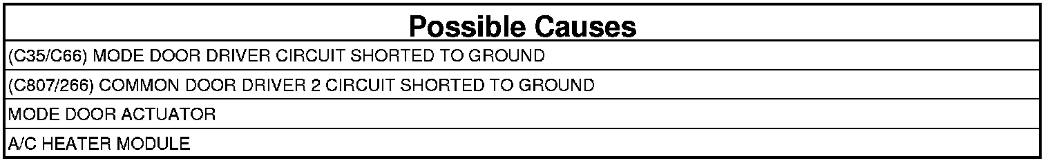 - Repair the (C35/C66) Mode Door Driver circuit for a short to ground.