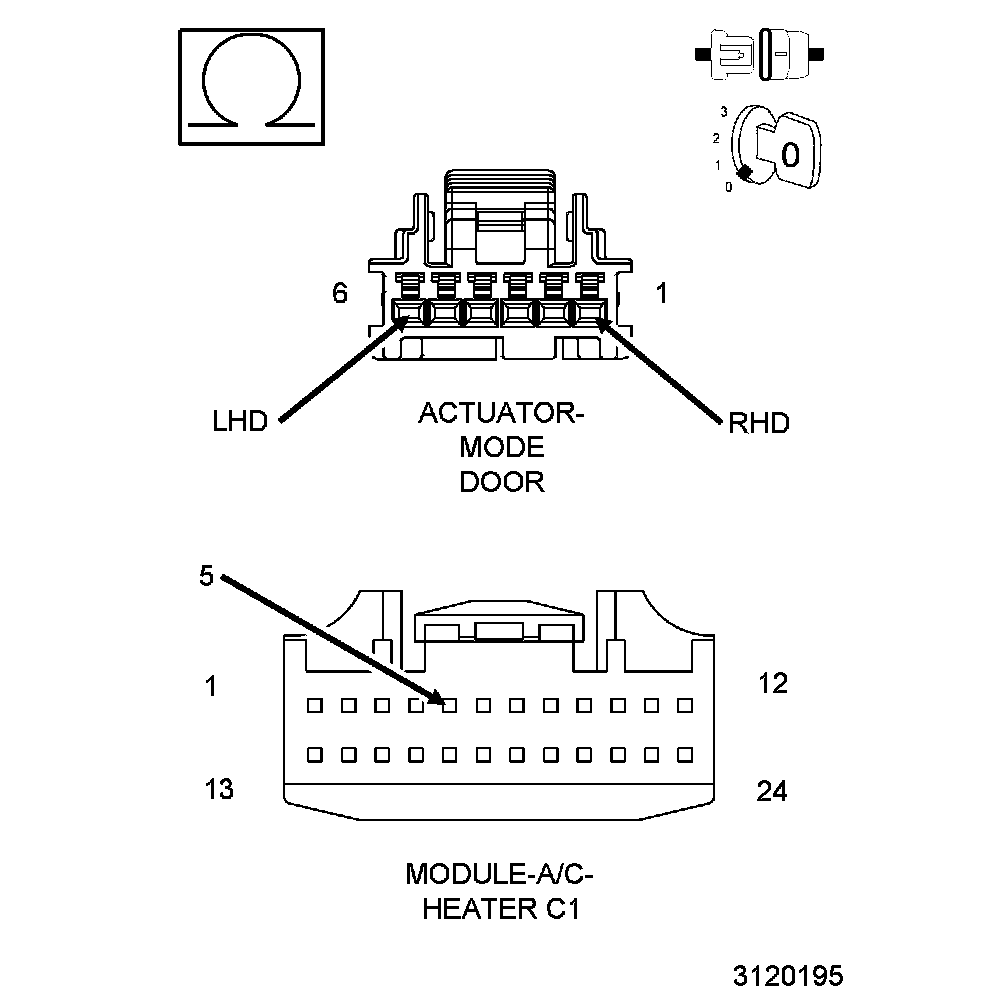 After the initial installation of the A/C Heater Module, the controller is calibrated to each individual blend/mode door actuator. These calibrations are stored as in the number of pulses it takes to move the door from one stop to another. The A/C Heater Module drives the Door Actuators by the use of Door Driver circuit and a Common Door Driver circuit and monitors all door actuator pulses to detect door movement in both directions. Most of the door actuators share a common door driver circuit but each door actuator has its own unique driver circuit. Due to shared circuitry, similar Diagnostic Trouble Codes (DTCs) can set at the same time for multiple actuators depending upon the type of circuit malfunction, its location, and the direction the actuator is moving when the malfunction is present. For further information Heating And Air Conditioning - Description.