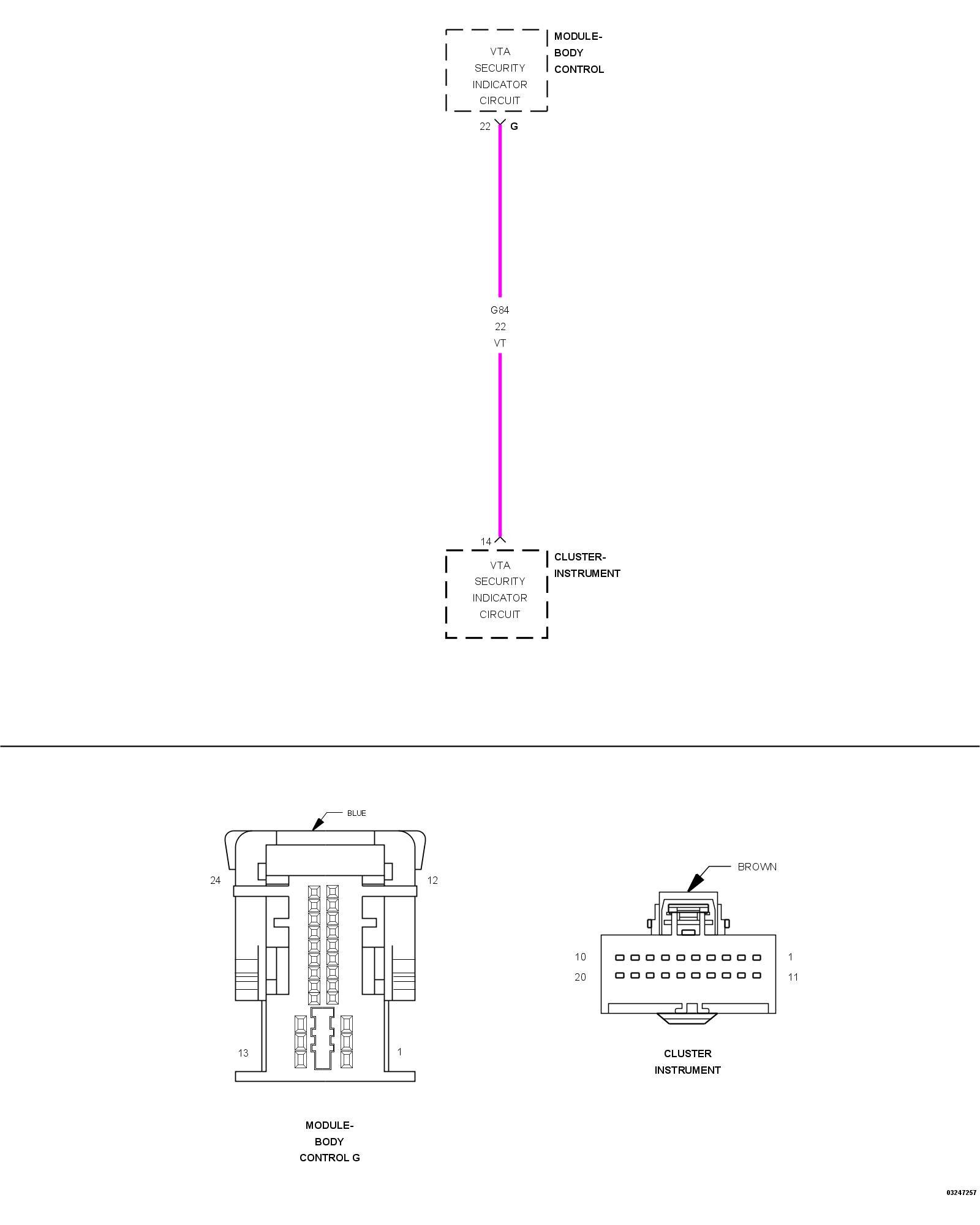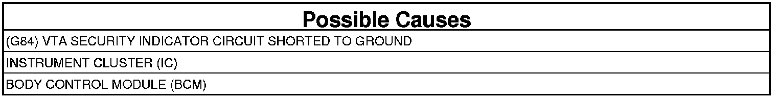 - Repair the short to ground in the (G84) VTA Security Indicator circuit.
