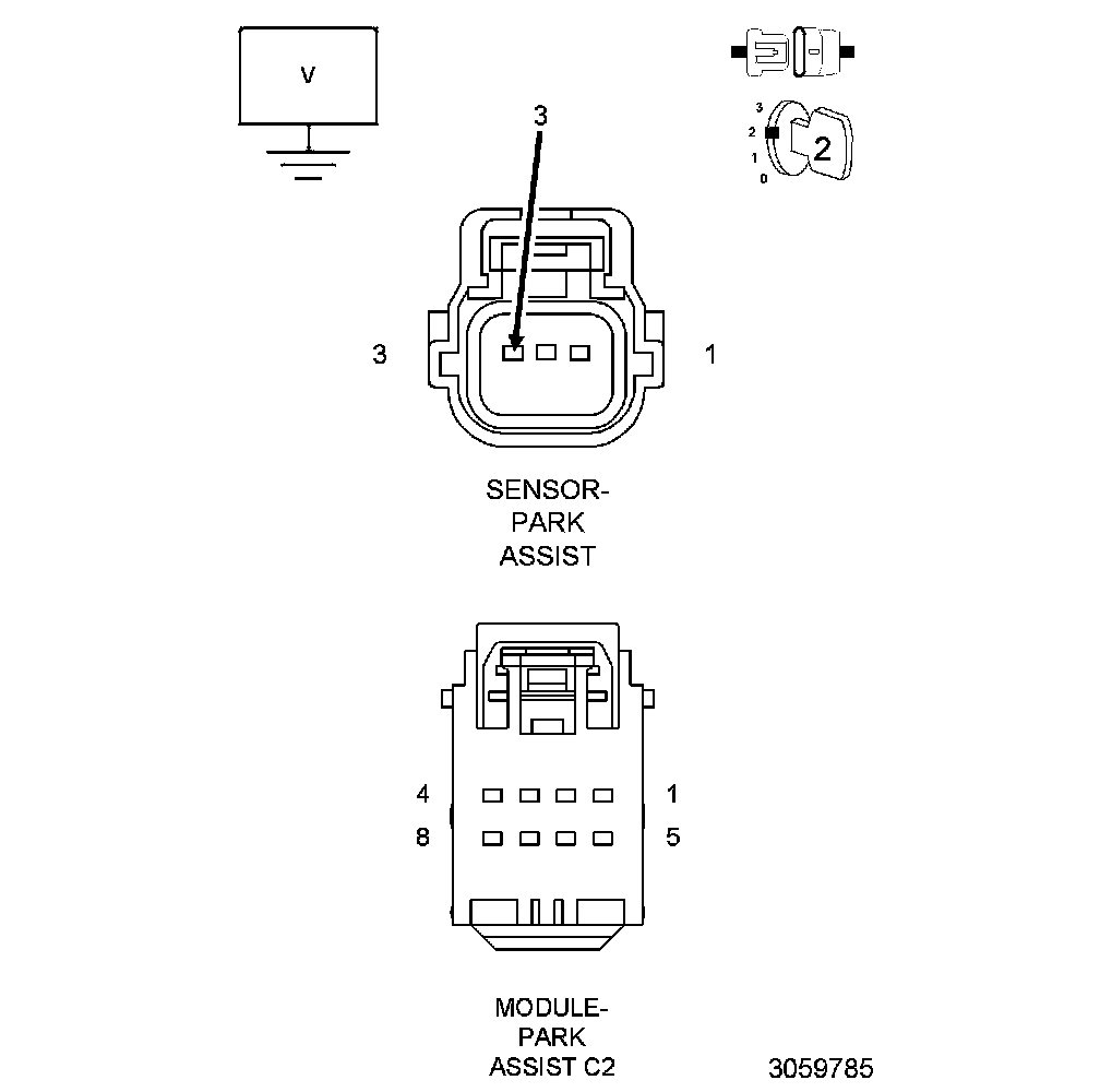 The Park Assist Sensors are ultrasonic transceivers that are completely controlled by the Park Assist Module. The sensors transmit and receive ultrasonic signals. Each sensor has a voltage, signal, and return circuit to the module. The sensors communicate with the Park Assist Module using a dedicated serial bus communication circuit.