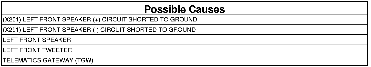 - Repair the (X201) Left Front Door Speaker (+) circuit for a short to ground.