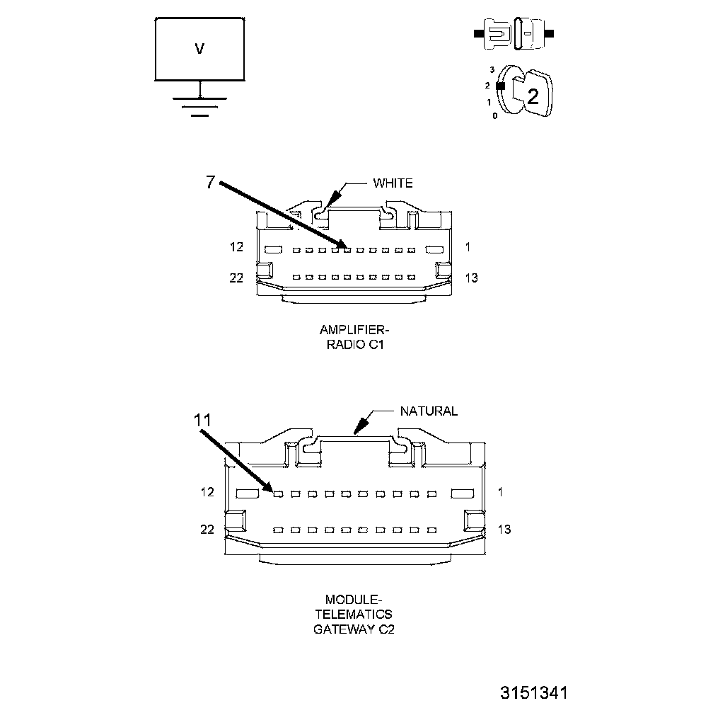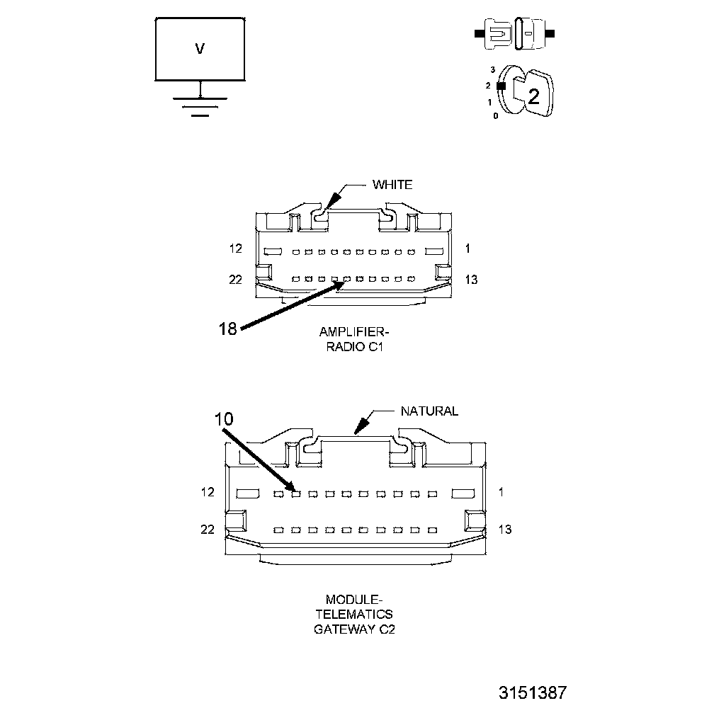 4. Measure for voltage between the (X54) Right Front Audio (+) circuit and ground.