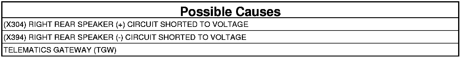 - Repair the (X304) Right Rear Speaker (+) circuit for a short to voltage.