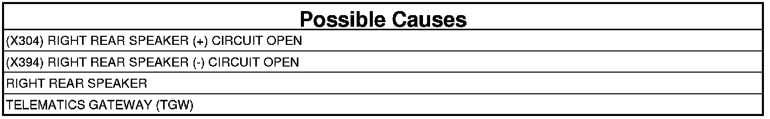 - Repair the (X304) Right Rear Speaker (+) circuit for an open.