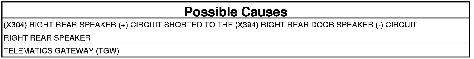 - Repair the (X304) Right Rear Speaker (+) circuit, and the (X394) Right Rear Speaker (-) circuit for a short together.