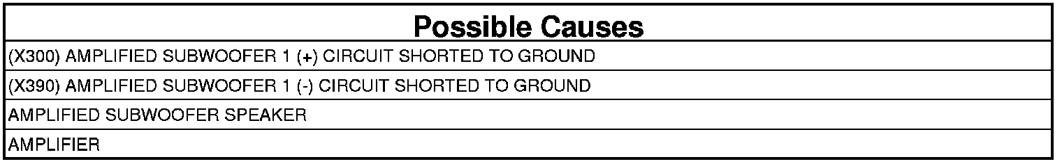 - Repair the (X300) Amplified Subwoofer 1 (+) circuit for a short to ground.