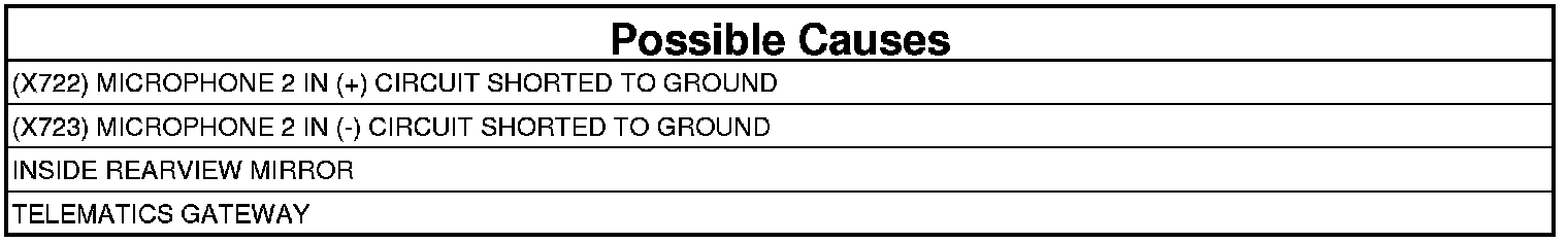 The TGW detects a short to ground on either the (X722) Microphone 2 IN (+) circuit or (X723) microphone 2 IN (-) circuit for greater than 10 seconds.