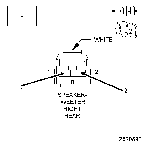 6. With a voltmeter set to read in A/C voltage, measure the voltage of the Right Rear Speaker circuits in the Right Rear Speaker harness connector.