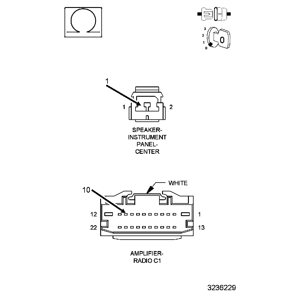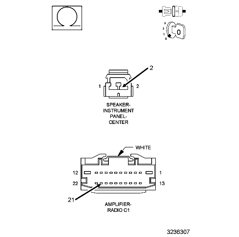 The (X200) Center Instrument Panel (I/P) Speaker (+) circuit and the (X290) Center Instrument Panel (I/P) Speaker (-) circuit are outputs of the Amplifier. The Amplifier controls and monitors these circuits for a concern.