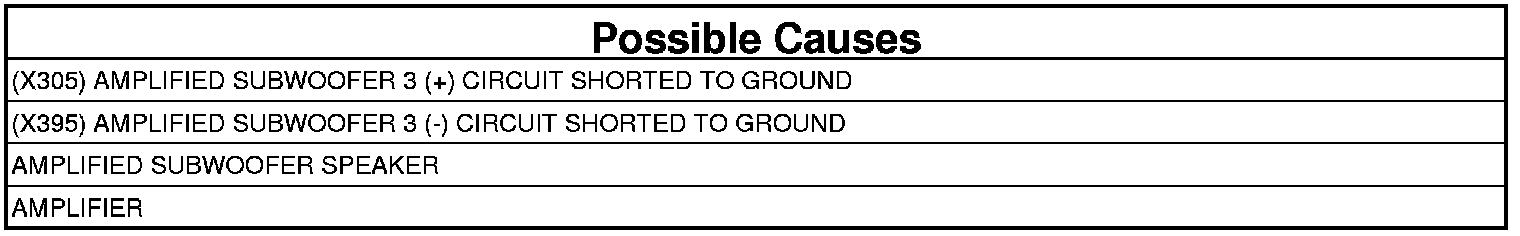 - Repair the (X305) Amplified Subwoofer 3 (+) circuit for a short to ground.