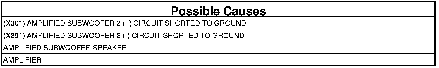 - Repair the (X301) Amplified Subwoofer 2 (+) circuit for a short to ground.
