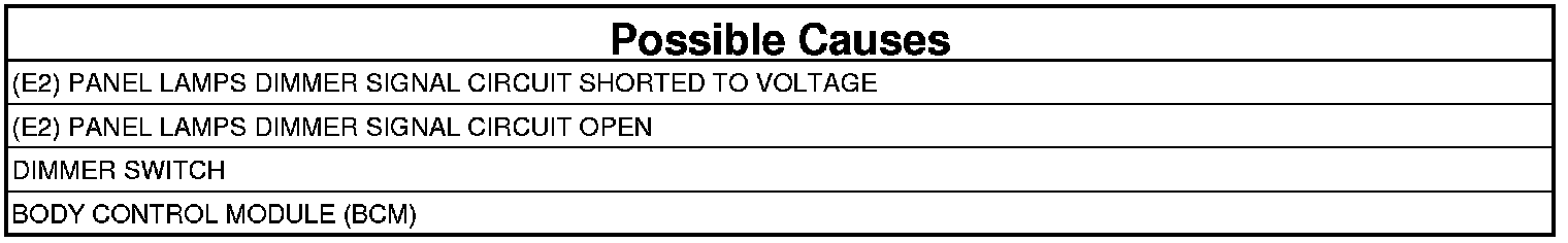 - Repair the open in the (E2) Panel Lamps Dimmer Signal circuit.