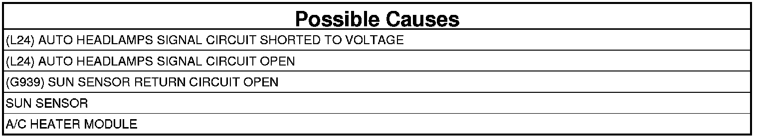 - Repair the (G939) Sun Sensor Return circuit for an open.