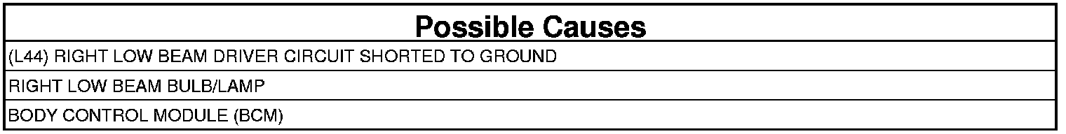 - Repair the short to ground in the (L44) Right Low Beam Driver circuit.