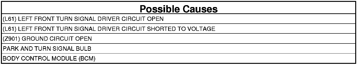 - Repair the open in the (L61) Left Front Turn Signal Driver circuit.