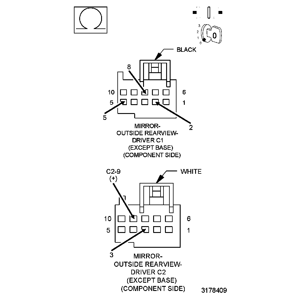 - Test complete, the condition or conditions that originally set this DTC are not present at this time. For vehicle's equipped with folding outside rearview mirrors, repeat the above test with the mirror folded. If this DTC is now active, Go To 2. For others, using the wiring diagrams as a guide, check all related splices and connectors for signs of water intrusion, corrosion, pushed out or bent terminals, and correct pin tension.