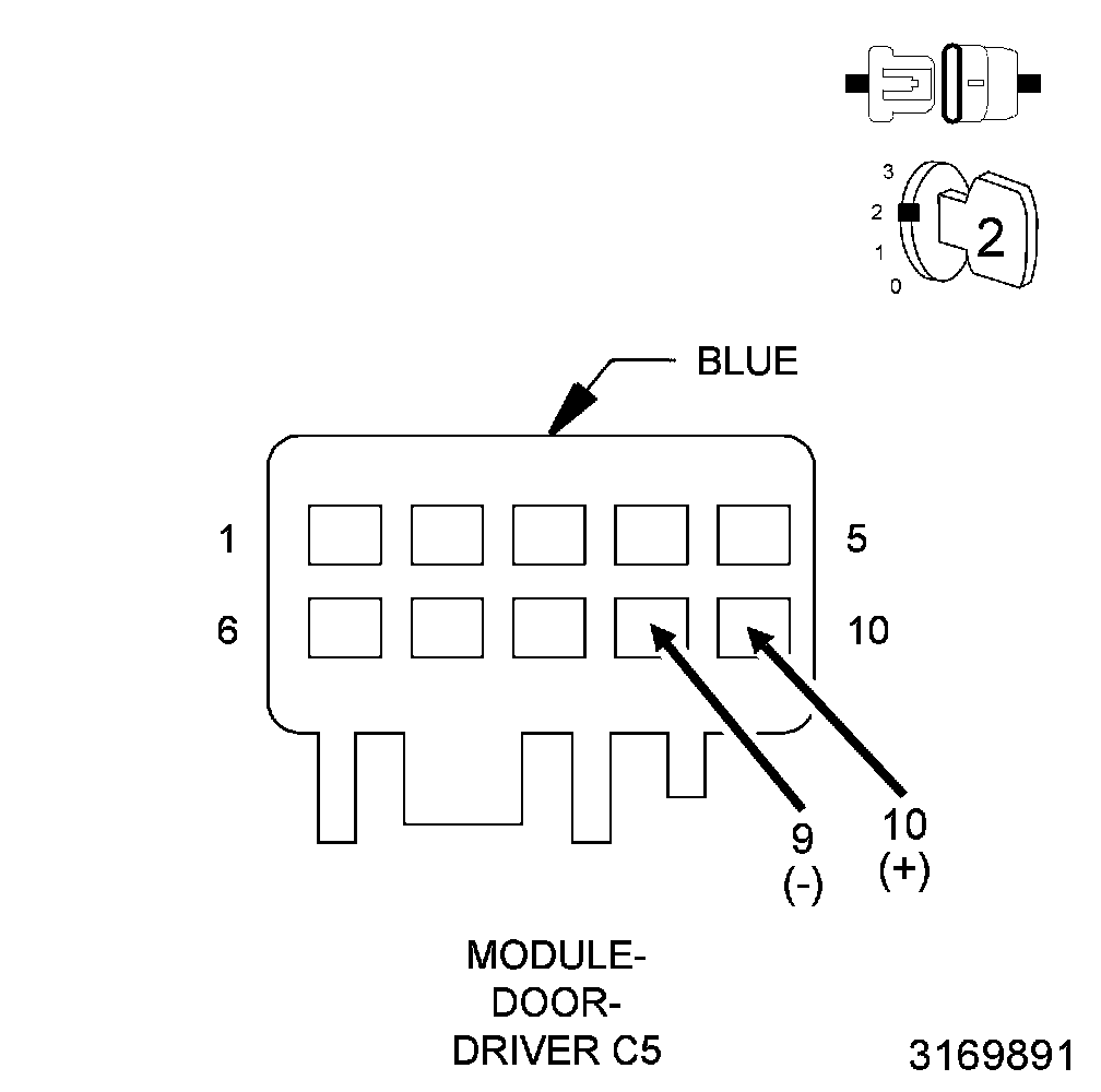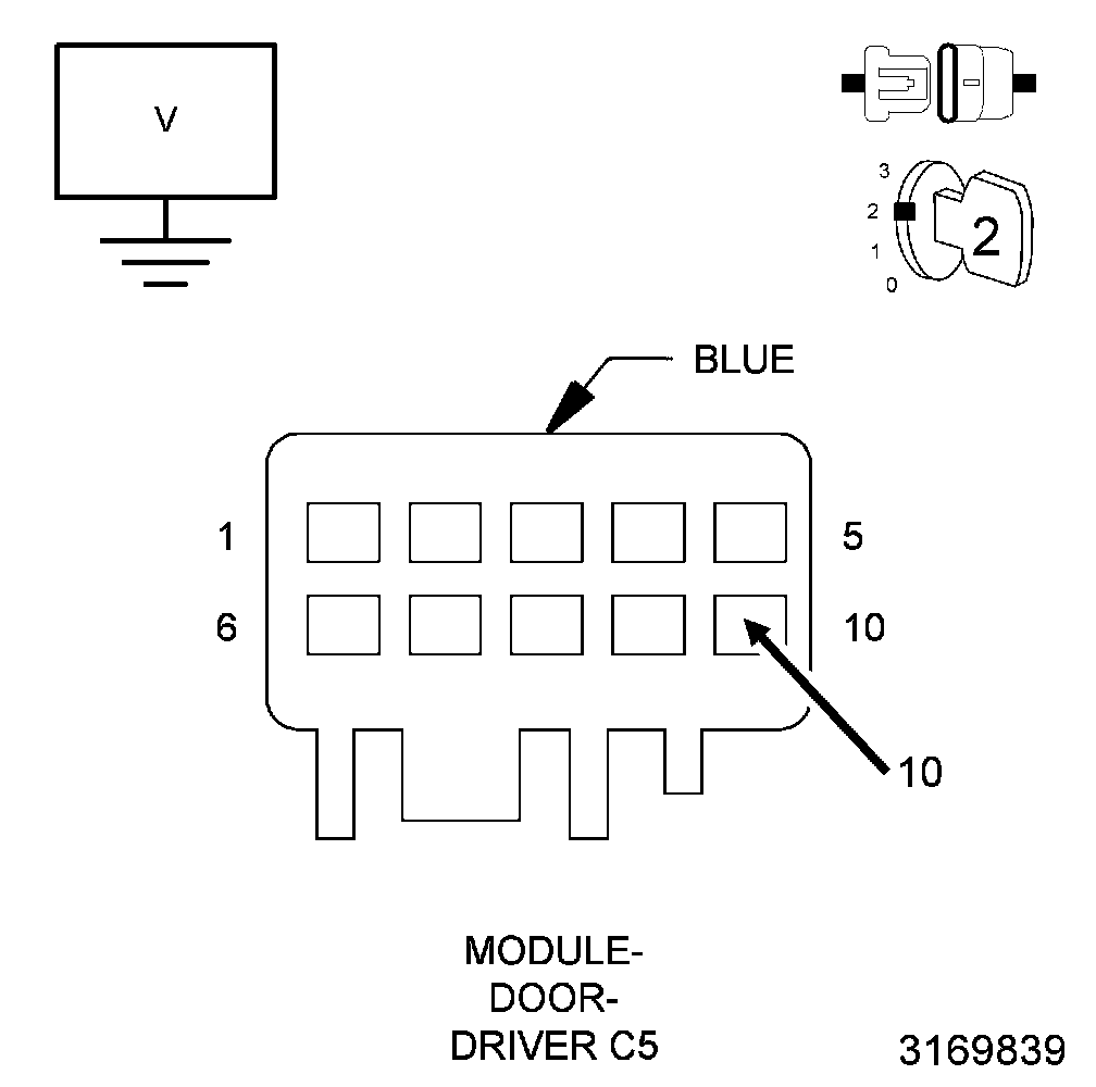 6. Measure the voltage between ground and the (M43) Driver Door Ambient Lamp Driver circuit in the Driver Door Module C5 harness connector.