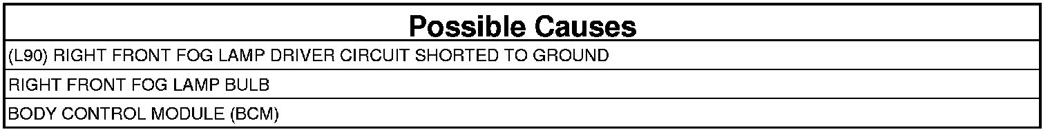 - Repair the short to ground in the (L90) Right Front Fog Lamp Driver circuit.