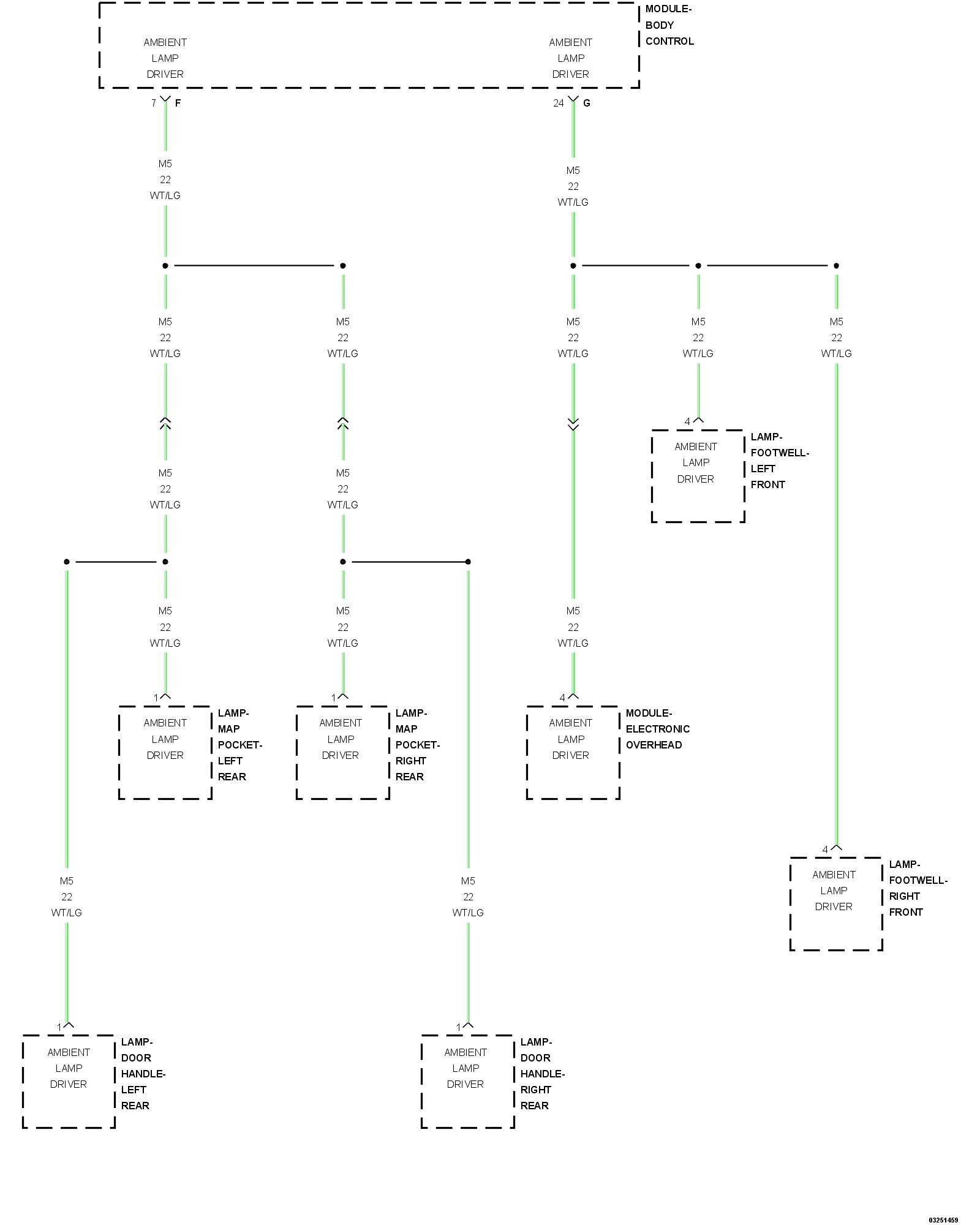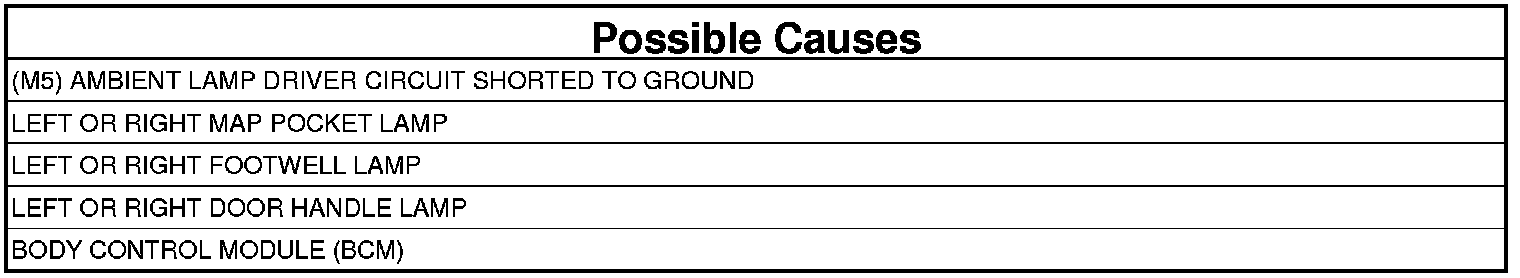 - Repair the short to ground in the (M5) Ambient Lamp Driver circuit.