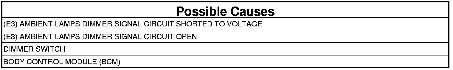 - Repair the open in the (E3) Ambient Lamps Dimmer Signal circuit.