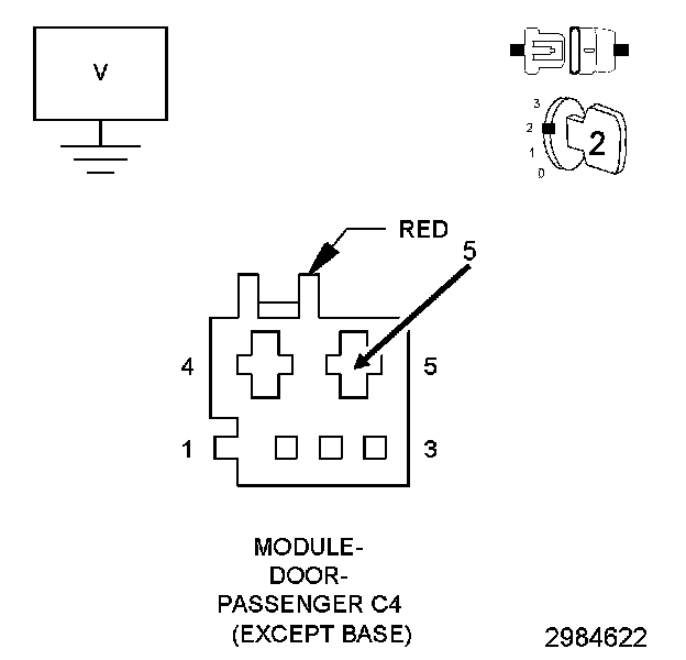 4. Measure the voltage between ground and the (Q22) Passenger Window Driver Down circuit.
