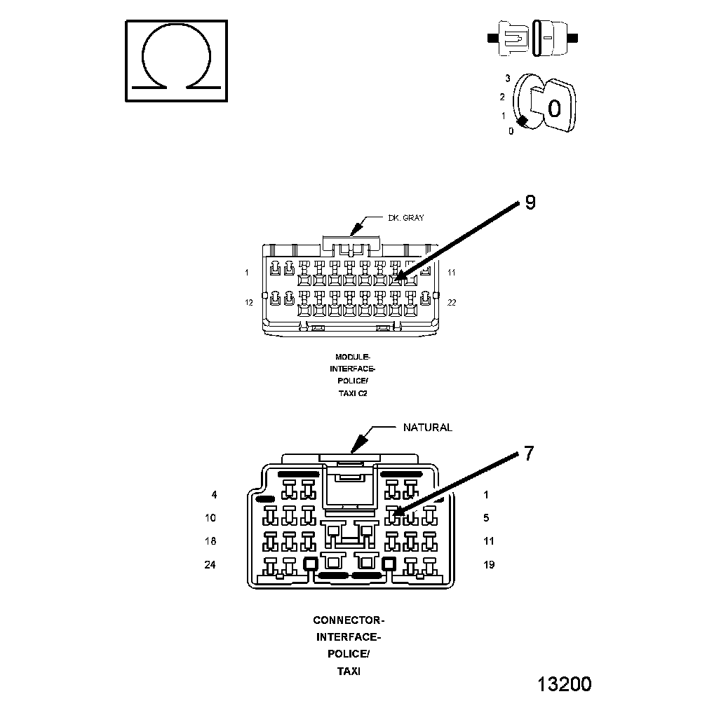 2. Disconnect the VSIM 24 way harness connector (aftermarket light/siren controller side).