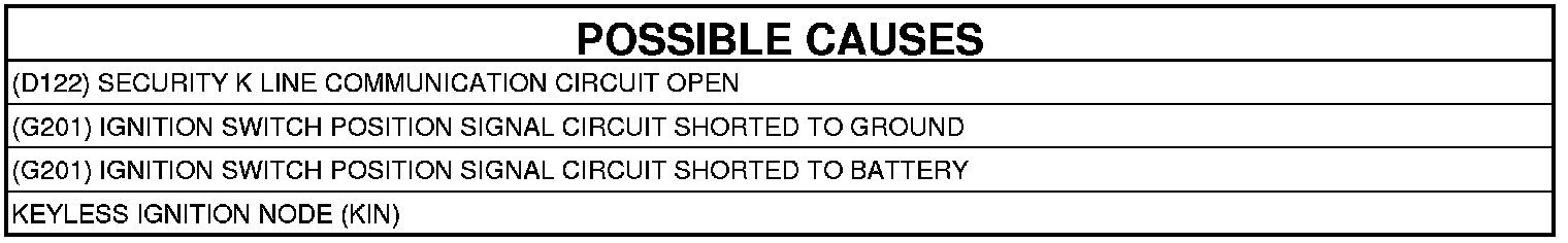 - Repair the open in the (D122) Security K Line Communication circuit.