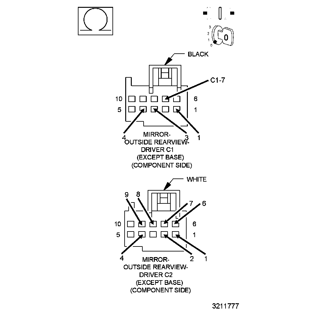 - Repair all circuits with a resistance below 20K Ohms for a short to the (P67) Driver Mirror Vertical Position Signal circuit. If the wiring harness and connectors are okay, replace the Driver Outside Rearview Mirror. Outside Rearview Mirror - Removal.