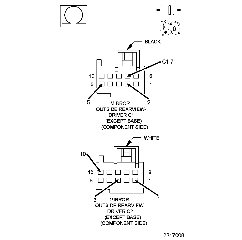 1. Disconnect the Driver Outside Rearview Mirror C2 (Component Side) connector.
